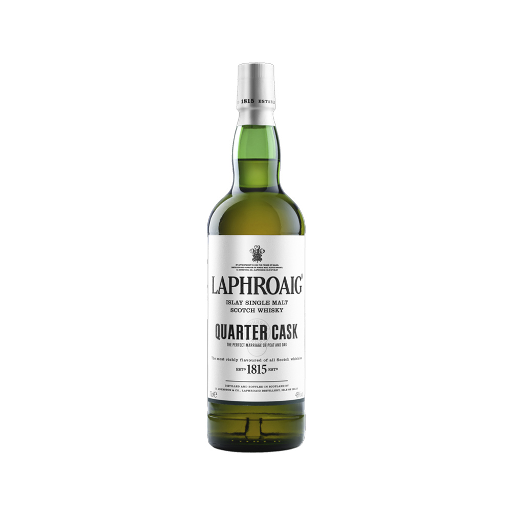Laphroaig Quarter Cask Single Malt Scotch Whisky offers an irresistible doubling of flavour, due to the double maturation in two barrels made of American oak. Still-maturing whisky from our standard ex-bourbon barrels is transferred to quarter casks and left to rest in our warehouse just a stone’s throw from the Atlantic shore.