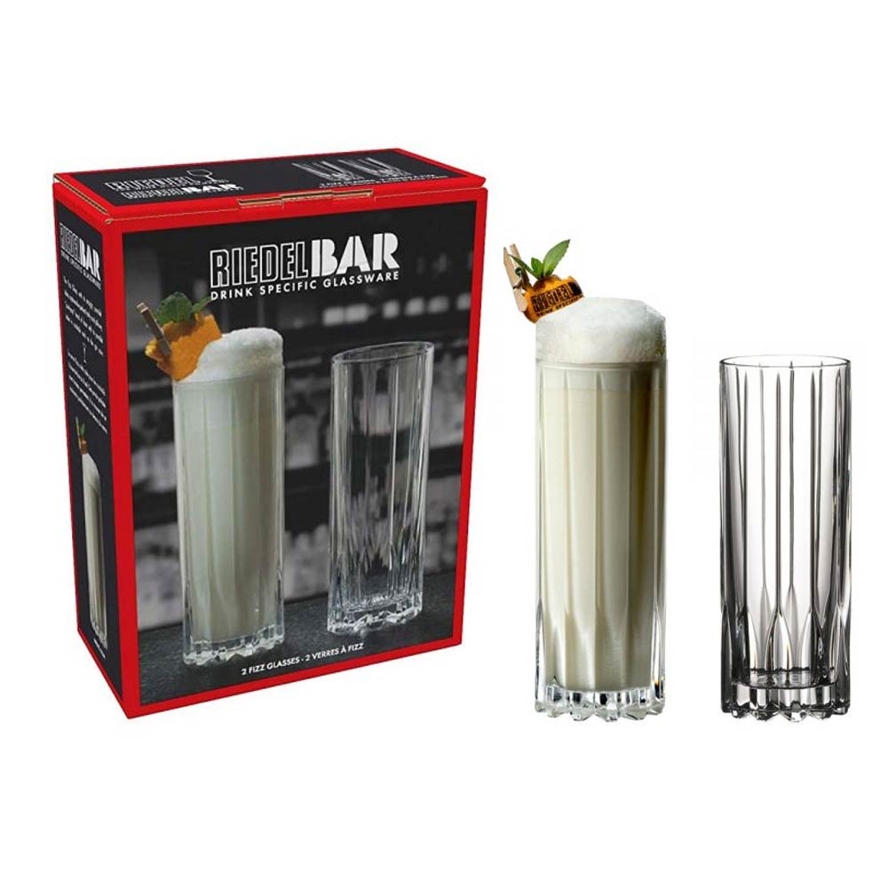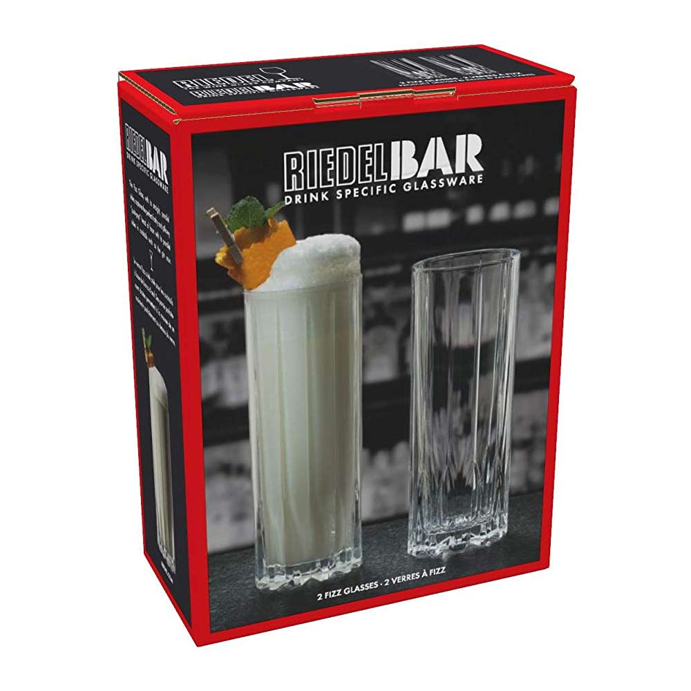 The Fizz Glass is part of the latest revolutionary collection from RIEDEL Barware, named Drink Specific Glassware. This glass captures the perfect frothy and pillowy “push-pop” head of foam in cocktails like the gin sour.This pack contains two glasses.Machine-made and dishwasher safe.
