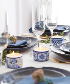 - 1 x Portus Cale Gold & Blue Tea Light Aromatic Candle Set